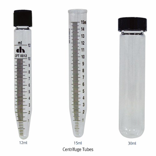 글라스 원심관 Centrifuge Tubes, with Conical-or Round-Bottom, 12~40㎖ with or without Teflon Line Screwcap